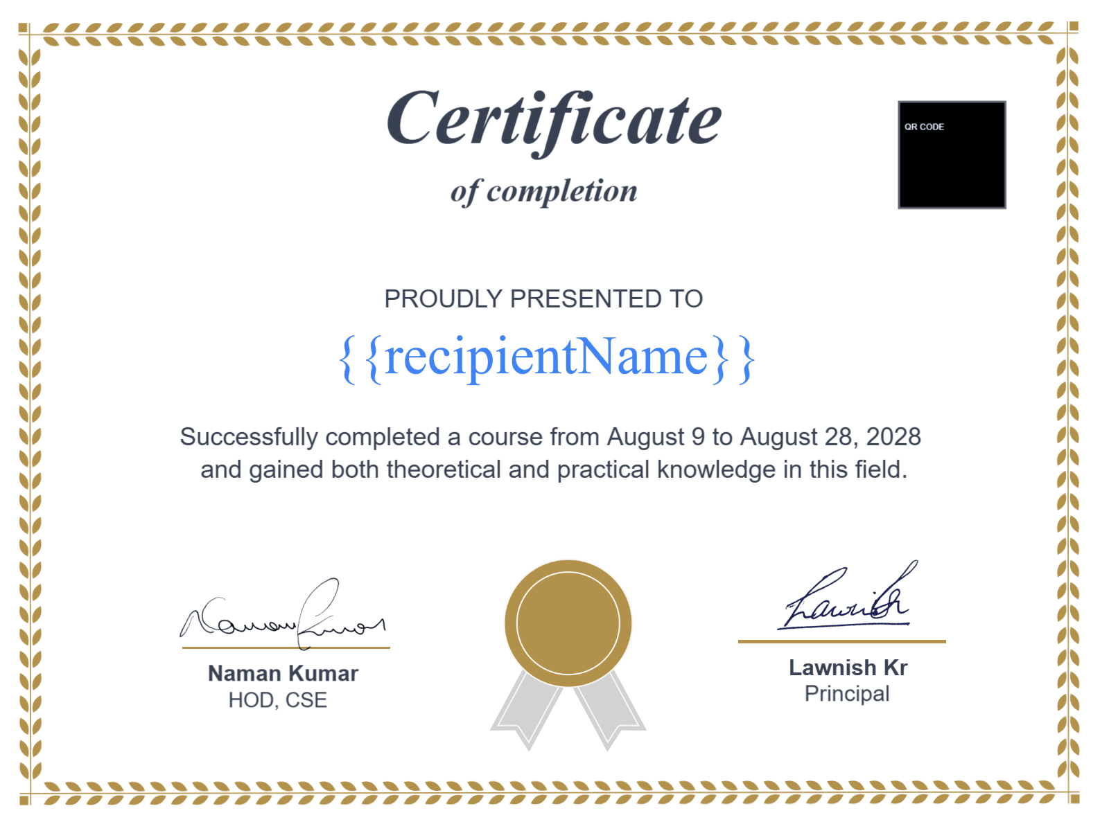 Start with a beautiful design. Customize in minutes. Issue verifiable certificates and badges with Creadefy.